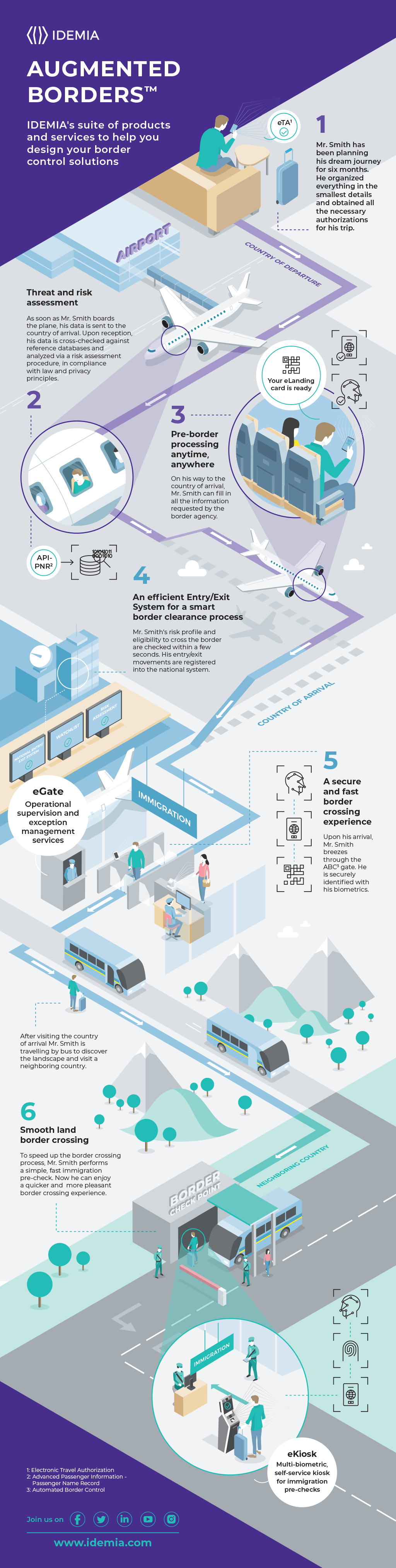Follow the journey of Mr Smith who has been planning his dream journey for six months. He organized everything in the smallest details and obtained all the necessary authorizations for his trip. Behind the scene, discover IDEMIA’s suite of products and services to help design seamless and efficient border control solutions: